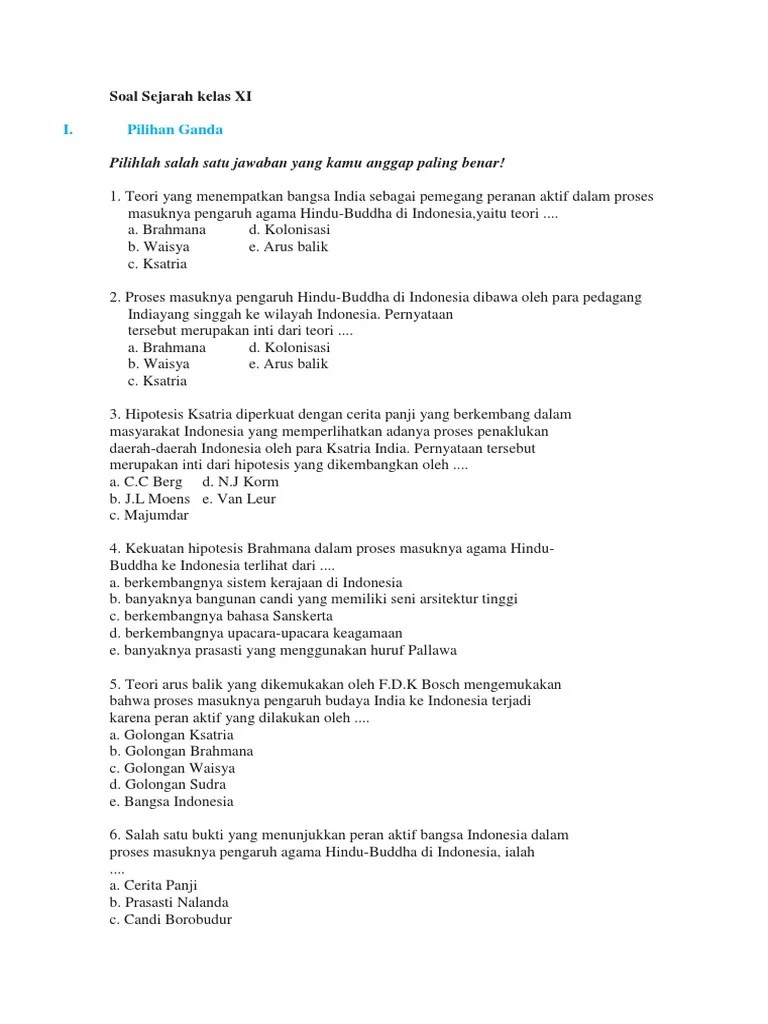 Bahasa yang digunakan dalam prasasti kutai . Berikut, pola soal essay sejarah kelas 11 ipa semester ganjil dan kunci jawabannya. Buddha ke indonesia terlihat dari. Berkembangnya sistem kerajaan di indonesia. Contoh soal dan jawaban tentang hindu budha di indonesia seperti apa latar belakang masuknya agama hindu budha ke indonesia, saluran penyebaran agama hindu . Kerajaan hindu terbesar di indonesia adalah… Berikut ini adalah contoh soal beserta jawaban dan . Peninggalan kerajaan hindu, budha, islam dan peninggalnnya. Candi prambanan merupakan contoh dari kebudayaan agama. Disajikan gambar contoh candi bercorak buddha di indonesia, peserta. Berikut, contoh soal essay sejarah kelas 11 ipa semester ganjil dan kunci jawabannya. 55 contoh soal dan jawaban sejarah indonesia kelas 10 semester 1 kurikulum 2013 (pilihan.